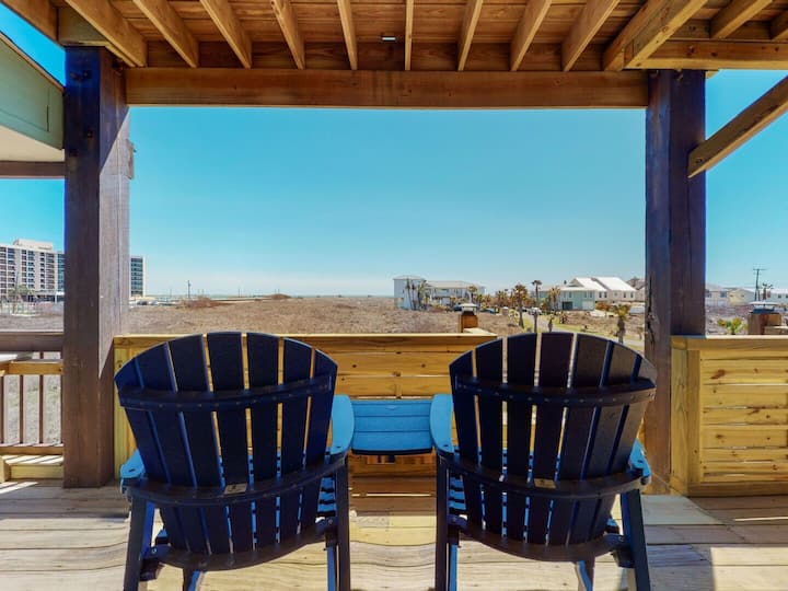 This beautifully remodeled 3 story home has custom upgrades, modern décor, numerous windows for natural lighting and views of the Gulf and Ship Channel, which is a few blocks away by car or golf cart.  All floors are accessible from the inside as well.