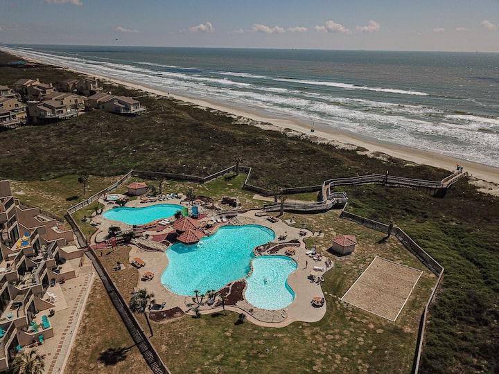 The Mayan Princess is right in the middle of Mustang Island, with Port Aransas a ten-minute drive to the North and North Padre Island just minutes to the South. Corpus Christi is right over the JFK Causeway Bridge and Rockport is just a ferry ride away. Exquisite and Elegant all wrapped into one at this fabulous 2 bedroom, 2.5 bath split level condo.