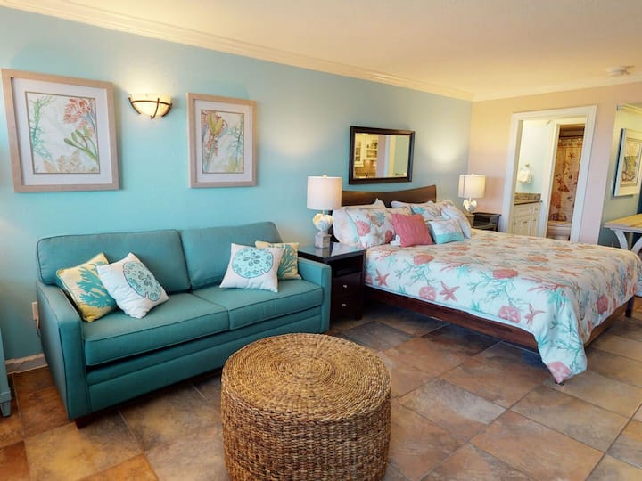 SB141: Efficiency / 4 Guests / Shared Pool & Hot Tub / No pets allowed / Golf cart accessible / PARKING FOR 1 CAR IN COMPLEX PARKING LOT, PARKING PASS REQUIRED, Elevator Access