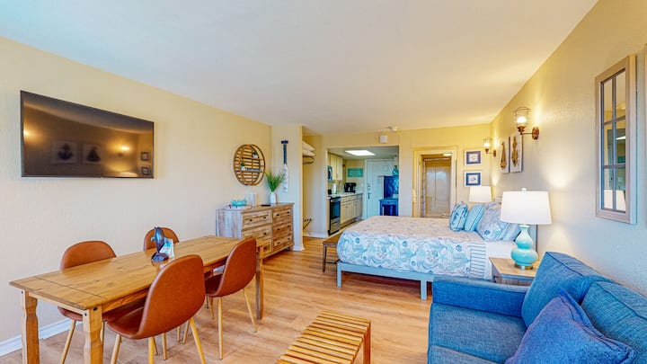 SB132: Efficiency / 1BA / 2 Guests / Shared Pool & Hot Tub /  No Pets Allowed / Golf Cart Accessible /   Elevator Access / PARKING FOR 1 CAR IN COMPLEX PARKING LOT, PARKING PASS REQUIRED