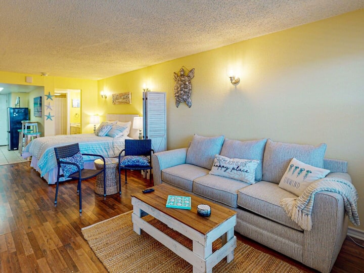 SB126: Efficiency / 1BA / 4 Guests / Shared Pool & Hot Tub / No pets allowed / Golf cart accessible / PARKING FOR 1 CAR IN COMPLEX PARKING LOT, PARKING PASS REQUIRED Elevator Access