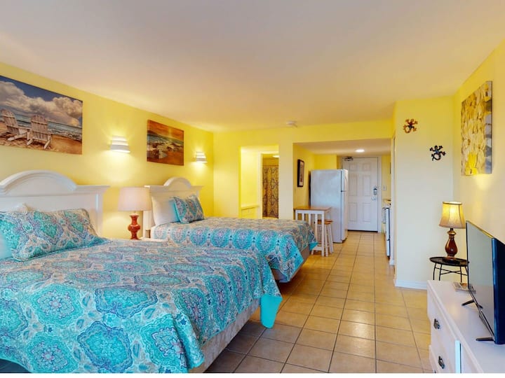 This condo is located on the 2nd floor overlooking the beautiful pool area at the Sea Breeze Condo Complex with 2 Queen size beds. Ideal for a small family of 4 with everything you need to prepare meals in this property. Equipped with a large flat-screen TV, full-size refrigerator, full-size oven and stove, coffee maker and more (*No dishwasher). No smoking inside the property. Laundry facility on the premises. Elevator Access