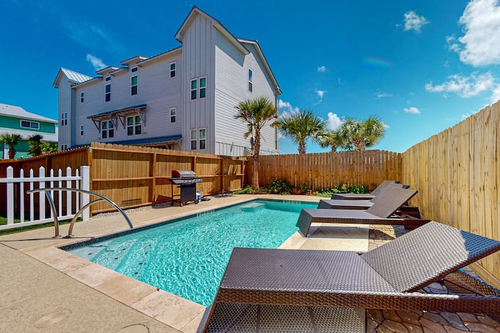 Ocean's 11th is a stunning luxury home featuring 5-bedrooms and 4 full bathrooms. The decor is elegant, the furnishings are comfortable, and the open concept layout is perfect for entertaining. Show off your culinary skills in the fully equipped kitchen with top-of-the-line appliances, a dining table for 8 w/ additional seating at the kitchen counter. Step outside to enjoy the spectacular ocean views, outdoor seating, private heated pool, and gas grill.