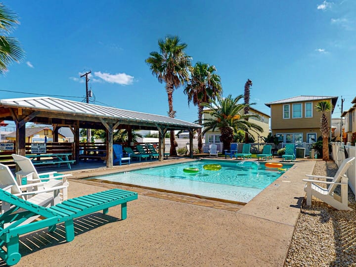 Located in the heart of Mustang Island, and just a couple minutes to the beach, our beautiful Port Aransas vacation homes are clean, bright and conveniently close to the very popular Winton's Candy Store. And you'll love the Station Street neighborhood. Relax under the Palapa next to walk-in pool.