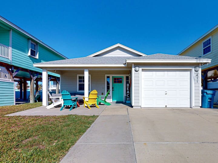 Reel Escape, this coastal decorated one level three bedroom, two bath home that sleeps ten, is just what you've been looking for. Conveniently located in town, in a quiet neighborhood just 0.5 miles from the beach, 0.6 miles to the nearest restaurant and 1 mile to shops and nightlife.