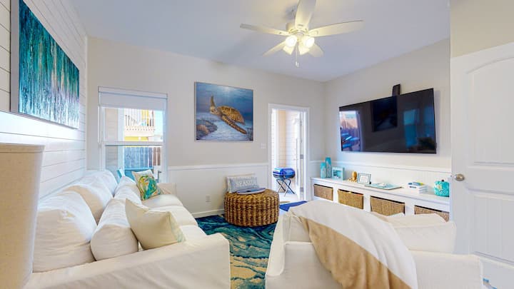 Blue Space is a new 2 bedroom, 2.5 bath Townhome adorned with island and marine life décor in calming shades of blue and green, located right in the heart of Port A and within walking distance to the beach.
