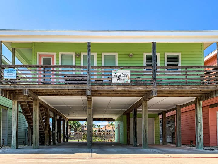 Hula Girl House sits on stilts and boasts a large open concept kitchen/dining/living area and is located in Ocean Village, just 0.8 miles from the beach. This home accommodates 10 guests and is professionally decorated and furnished in an eclectic, tropical style creating a fun 'beachy" feel.