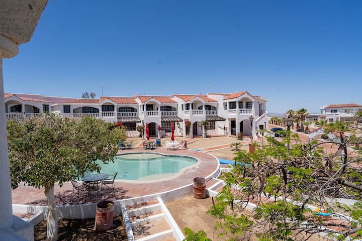 Featuring two floors with a bedroom on each floor, there are three beds - one queen bed in the master bedroom and two twin beds in the second bedroom. The number of beds can comfortably sleep 4 - 6 guest depending on age. Maximum occupancy is 8 guests. Guests may bring air bed if more comfort is desired beyond the provided three beds.