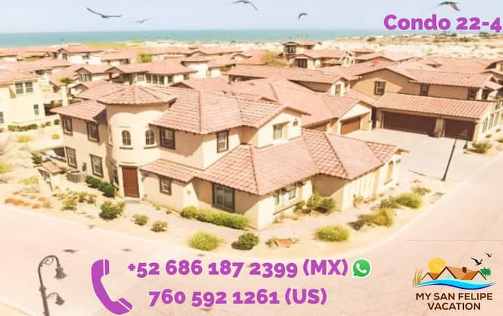 This two story home overlooks the Las Caras de Mexico golf course! Three bedrooms, fully equipped kitchen, an open floor plan and outdoor patio make this home a luxurious way to spend your vacation! The spiral staircase adds a touch of ele