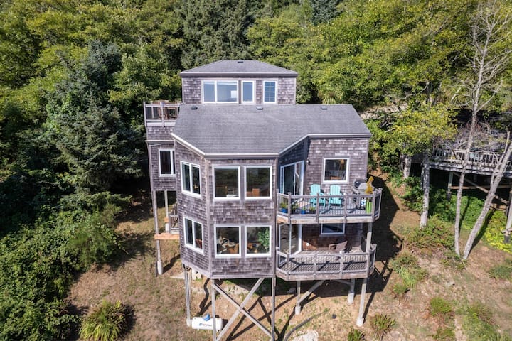 Situated high on a hillside in Oceanside, Oregon, this home is a perfect choice if you want a room with a view. Comfortable and stylish, it’s got a great location and everything you could need to feel right at home. An open-plan layout makes the living spaces sociable, while the huge picture windows offer ocean views at every turn. Snuggle up on the sofa in front of the fireplace, or sit on one of the decks – you’ve got three to choose from.