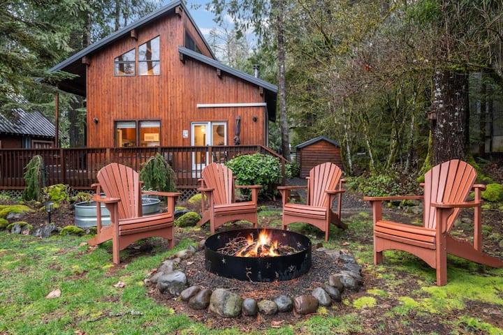 Prepare to relax and unwind on the banks of the Sandy River. Sitting just a few steps from the water's edge, you will be completely immersed in the sights and sounds of the river, wildlife, and the picturesque setting that provides for a truly special experience.