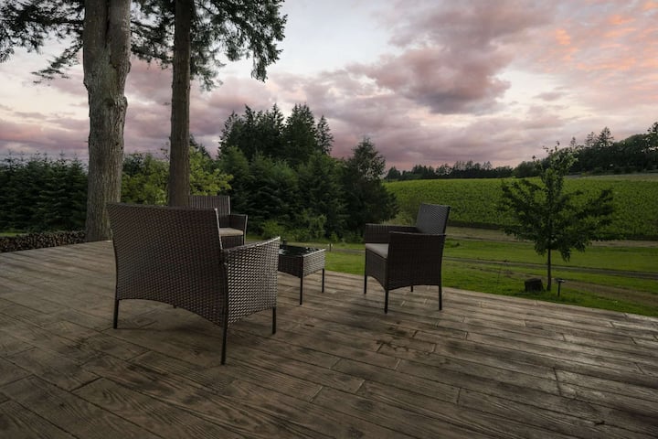 If you are looking for the perfect little wine country getaway, look no further than The Blanchard Guest home. This wonderful two bed, two bath home sits in the heart the Dundee Hills AVA. From the front deck, you can enjoy the incredible views overlooking Sokol Blosser, and are just minutes away from countless other wonderful wineries, award winning restaurants and regional attractions.
