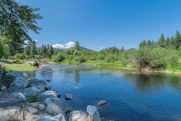 The beautiful Riverwood Lodge is located just outside of Plain on a beautiful large lot and low bank Wenatchee River and boasts of private hot tub and fabulous WIFI for streaming or working remotely.