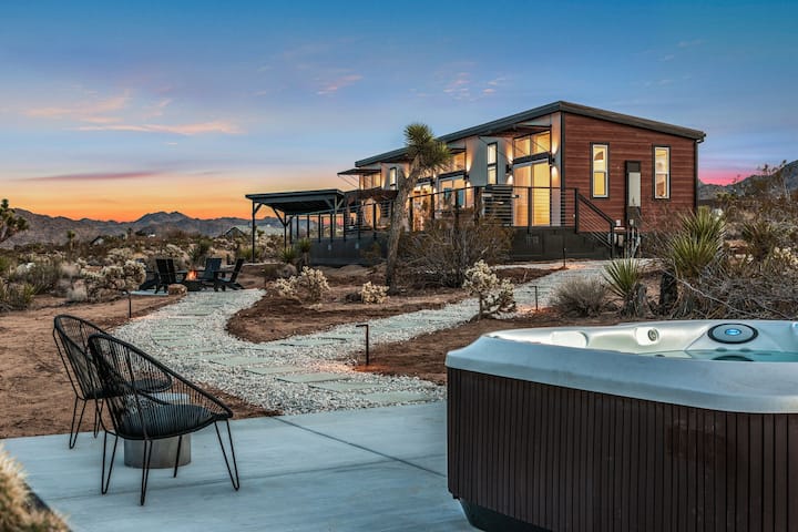 The Sagebrush Bungalow is a 935 square foot newly built home perched on nearly two untouched acres of perfect desert landscape. This property was created to be the perfect modern desert hideaway for travelers from all over the world.