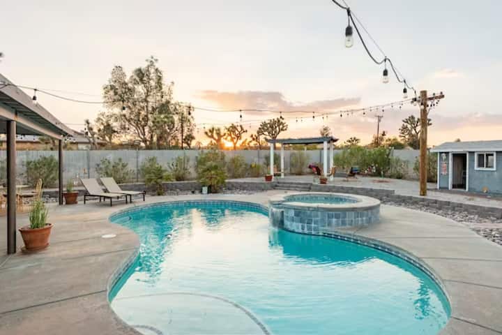 Welcome to our high-desert home and serene backyard oasis complete with in-ground salt water pool and hot tub! Created to inspire, provide escape + relaxation and encourage connection. The home is a 5 minute drive to downtown Yucca Valley and a 10 minute drive to National Park West Entrance. The home has beautifully designed interiors with elevated appointments, fun game room and picturesque backyard with large in-ground pool, spa and covered patio.