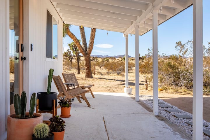 The Mojave Mesa House is a newly renovated one bedroom home in the high desert near Joshua Tree National Park, Pioneertown, the Integratron, Giant Rock & more. The home is on a secluded, 5 acre property within 15 minutes of town. It's the perfect place for a peaceful desert retreat where you can relax and unwind.