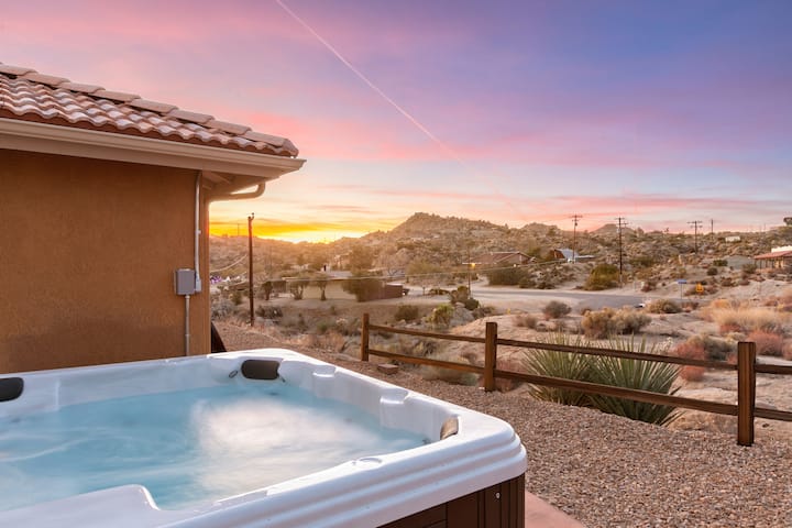 Come relax and escape to our stylish contemporary home tucked into the Yucca Valley Mountains. This property is secluded and surrounded by boulders and a dramatic desert landscape. Conveniently located minutes from the west entrance of Joshua Tree National Park. Relo Ranch boasts 3 bedrooms, 2 bath, two bright living rooms, full kitchen, dining area, garage with ping pong table and an outdoor fire pit with seating to sit back and relax and enjoy the stars above.