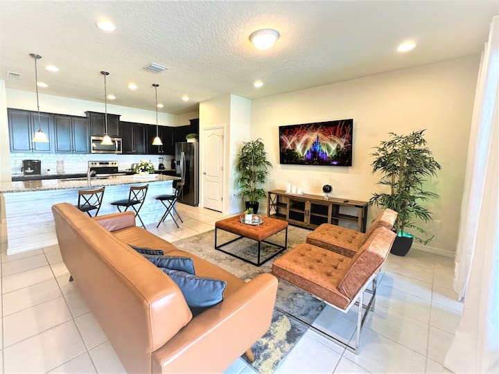 Our two-story home boasts chic décor, making it the perfect lodging choice for up to 12 guests. With every individual having their own suite and room, we aim to provide you with a comfortable stay. Also, you will have access to all the amenities of the Windsor at Westside Resort Club without any additional fees.