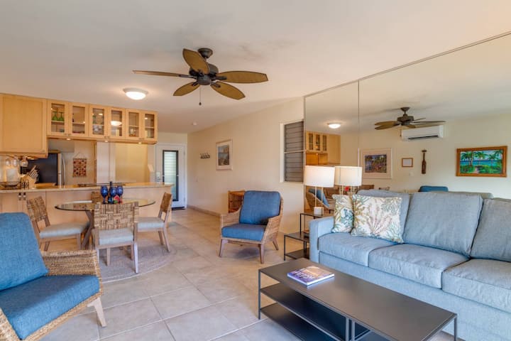 Our Maui property has gorgeous oceanfront views, with secluded lush tropical gardens. Enjoy our spacious two-bedroom unit located at the Kahana Sunset resort. This luxury condo features beautiful ocean views from the private lanai, an open floor plan, a full-size kitchen, two full bathrooms, and enough space to sleep six.