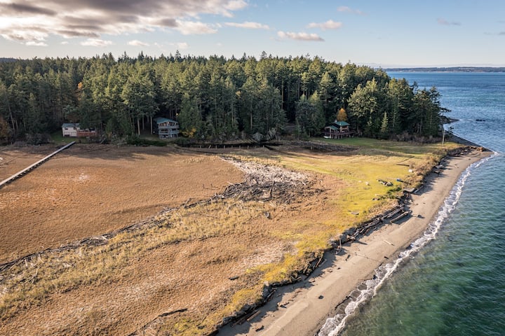 The Peninsula House is one of the most uniquely located houses on Lopez Island. This 3 bedroom, 3 bath modern house with Lopez charm sits next to Fisherman Bay land preserve on a private sandy beach