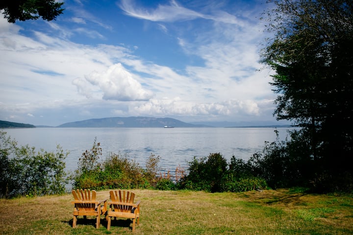 Tucked into over two acres of waterfront property, The Peapod Cottages are the quintessential Orcas Island retreat. Situated half a mile from Obstruction Pass State Park, this property boasts spectacular views of Buoy Bay and Mt. Baker.