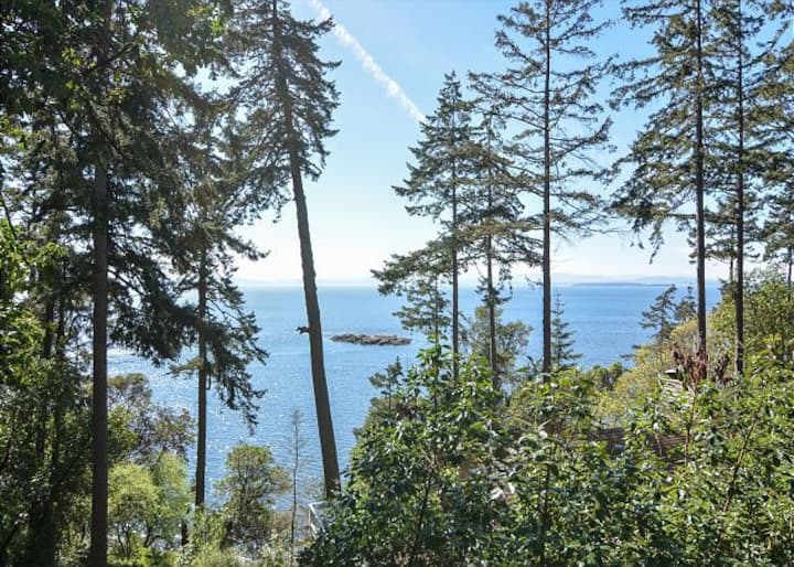 Enjoy this hillside-perch home that looks out over some of the most Orca traveled waters in Haro Strait. A brand new large deck, surrounded by trees, will make you feel like you're in a tree house. The sunsets are extraordinary!
