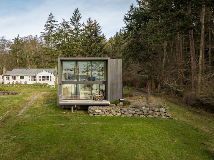 Asian design elements add a contemporary aesthetic to this newly-built vacation rental home on Orcas Island. Enjoy fabulous waterfront views and a rocky shoreline with tidepools to explore.