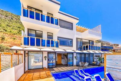 Prepare to be wowed when you vacation in the architect-designed Villa Marti, nestled in the hillside overlooking beautiful Kalamar Bay, near the holiday hot spot of Kalkan, on Turkey’s Turquoise Coast. This distinctive detached villa stands out from the crowd, with its elegant three storey unique structure, set in its own stoned walled grounds.