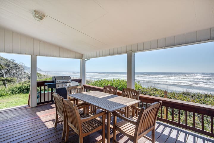 Your group of up to 8 people will feel right at home in this spacious home, with 3 bedrooms and 2 full baths. Enjoy the sunset, waves, or whale watching from the covered back porch or take the stairs down to the beach. Soak in the sites while relaxing in the hot tub!