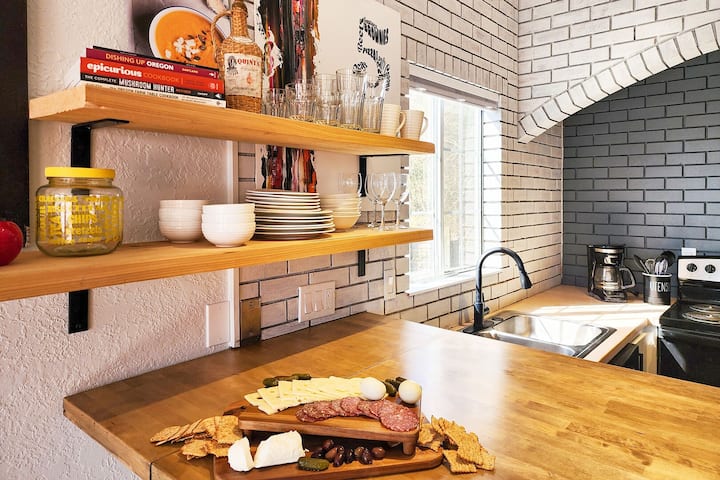 Smuggler's Cove #5 is in a shared building with 3 other condos. It is on the upper floor with several sets of stairs with landings in between. This comfortable condo has one bedroom with an ensuite bathroom. A murphy bed in the living room and another full bath in the hallway easily accommodates up to 4 guests