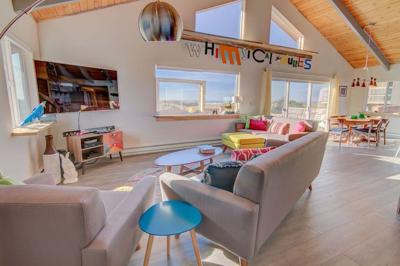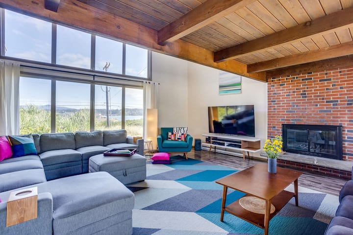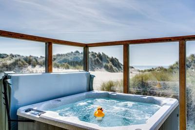 The Pacific Chart House is a large 2 story home that literally sits right on a sandy beach facing the Pacific ocean. With 4 large bedrooms (all with king beds), a full futon in the sunroom, twin sofa sleeper in upper loft and a queen sofa sleeper in the living room, this home sleeps up to 8 people and is perfect for vacations with family and friends. There are 3 bathrooms (a half bath, a 3/4 bath, and a full bath) and a large living room area.