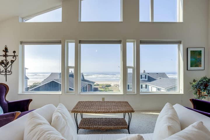 Sweet Homes Vacation Getaways brings you this gorgeous, two story, cedar shingle home, an idyllic ocean-side retreat. Sitting on a bluff overlooking the mighty Pacific Ocean, the Casa Del Mar property is just across the street from easy to navigate steps leading down to miles of beautiful sandy beach. This is a perfect destination for a romantic getaway, but it is also a lovely choice for up to 6 guests. You'll enjoy the sights, the sounds, and the fresh, salty smell of the sea.