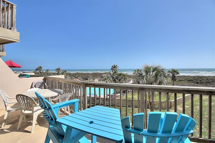 A Mustang Island favorite vacation rental condo that comfortably sleeps six is this 2BR/2.5BA 3rd floor ocean view split level condo at the beachfront Mayan Princess Resort!