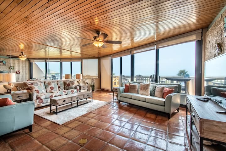 Spacious two-bedroom ocean view split level condo with breathtaking views of the Gulf of Mexico and lagoon pools
