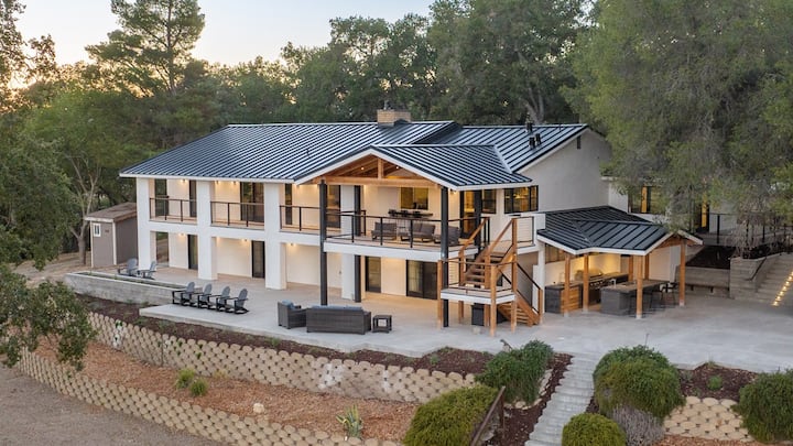 Vineyard House on the Oak & Vine Estate’s 46 acres. This property showcases breathtaking views, luxury amenities, and unique private culinary experiences.