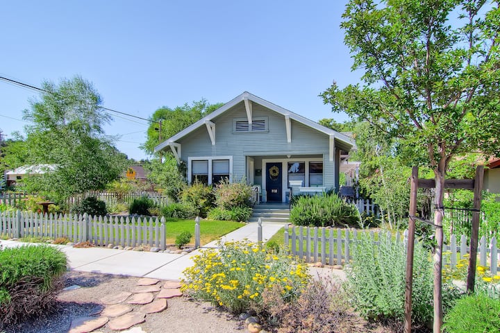 The Mary Agnes Poe House & Garden is ideal for romantic getaways, family vacations, or wine country weekendas in Paso Robles. This charming craftsman bungalow sleeps eight, with two full baths, just four blocks from downtown and all it has to offer!