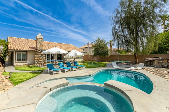 - Backyard w/ a pool, hot tub, putting green, & lounges