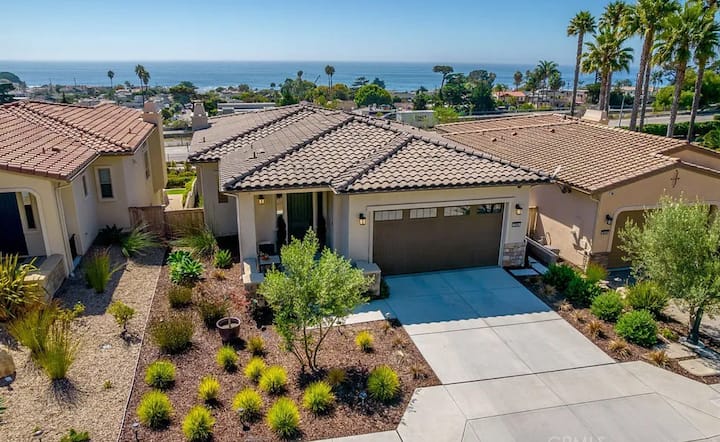 Costa Azzurra is a dreamy Pismo Beach home! The modern style home has 3 ensuite bedrooms, plus half bath, 2 living areas, dedicated desk/work areas. Located on the east side of Hwy 101 in a quiet neighborhood with Pacific Ocean views. Min 30 night rental.