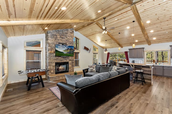 This brand-new home (built in 2020), known as Bea Nui home, has rich textures in every nook and cranny, adding to the classic log cabin atmosphere....