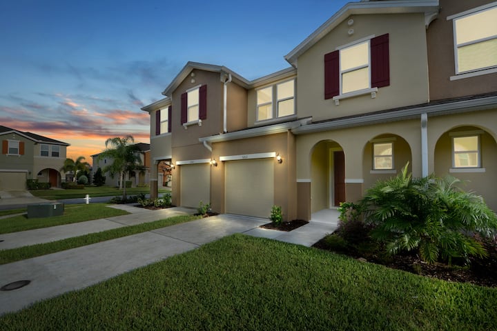 Guests are enticed for this stunning vacation home for its freshness and vividly colored decoration near Florida’s top attractions.