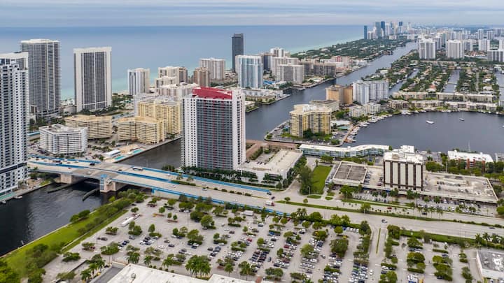 Perfectly situated on the Intracoastal Waterway, just steps from Hollywood Beach, Hallandale Beach is a quiet beach community between Hollywood and Miami.