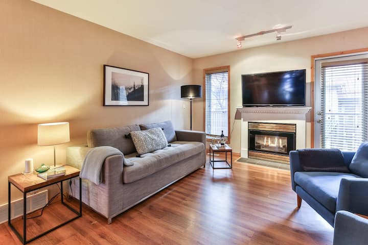 Family-Friendly Affordable Mountain Chalet. Positioned on the edge of Canmore, our condo is perfect for a quick getaway to the National Park, yet still within walking distance to great restaurants and bars. It offers a simple, clean space for families and groups of friends. Spacious living room w/ 50" TV (with cable and Netflix), high speed internet, & lovely gas fireplace will help you wind down from a day in the mountains. Well-equipped kitchen & dining room for 6.