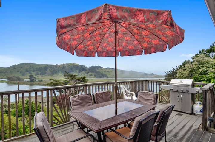 Castle Crag is a place to relax from the bustle of cities and freeways, yet is still within a short driving distance to the finest experiences offered in California. On a protected hillside behind Jenner, this home offers incredible views of the river and the ocean. A short walk to the ocean reveals resplendent wildlife including a seal rookery, blue herons, pelicans, seagulls, cormorants, sandpipers, ospreys, snowy egrets, hummingbirds, and many more.