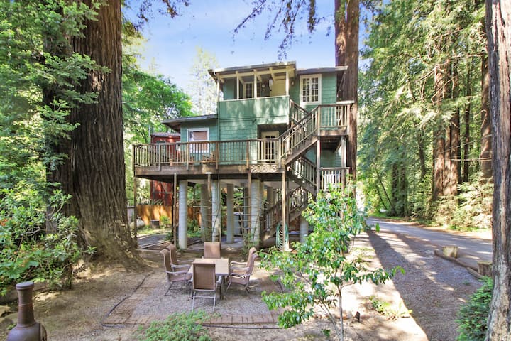 Monte Rio Treehouse has an abundance of character! From three stories in the majestic redwood trees to a gumball machine, to a hidden bedroom, the house sits at the crossroads of adventure and convenience. You can mosey at your own pace to several beaches along the Russian River, tennis courts, skate park, playground, bars, restaurants and the beloved Rio Theater. Hop in the car and you're a short drive to the Sonoma Coast, zip line adventure near Occidental, wineries and oodles of activities.