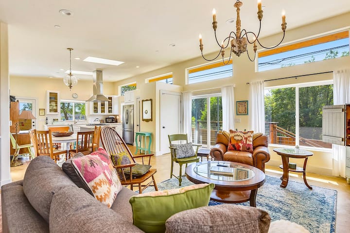 Celia's Garden is a joyful sanctuary - custom built in 2018 and just two blocks from downtown Graton where you’ll find restaurants and wine tasting rooms that exemplify West Sonoma County. This sunny and welcoming property is your home away from home - with an open and well-stocked kitchen and dining room. The living area is comfortable for entertaining and has an eclectic collection of books, DVDs, fanciful records, and kid-friendly activities that fill the bookcases and drawers.
