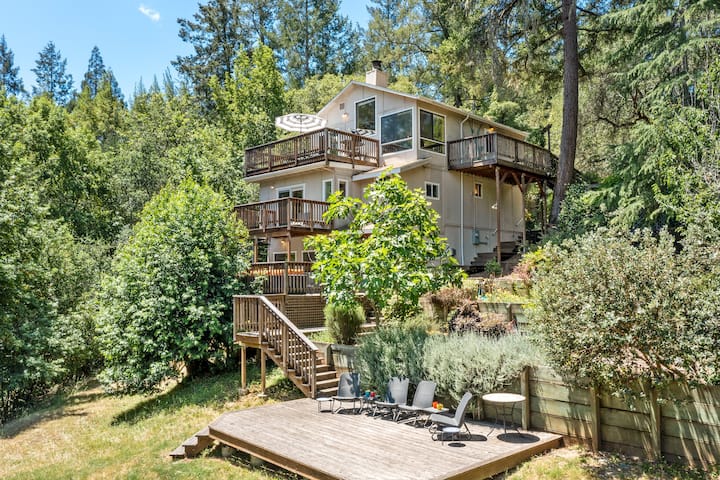 Hummingbird House is a beautiful, well-appointed home on a sunny property with views, privacy, numerous amenities, and a central Russian River Valley location. Sit out on one of the lovely decks with morning coffee, soaking up the sun, and enjoy the tranquility. Then, set off on a great day of exploring all that Sonoma County has to offer! When the day is done, come back, make dinner with the local ingredients you've collected, and then take an evening soak in the large hot tub.