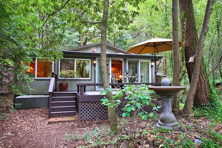 Fall in love with Falling Leaf! Enjoy the charm of the Russian River Valley in the serenity of this secluded and private property located across from seasonal Hulbert Creek and just minutes from downtown Guerneville. Falling Leaf features 2 bedrooms and one bath as well as a separate custom-built Japanese teahouse. The remodeled main house offers a charming country kitchen, modern bathroom, gas fireplace, flat screen TV and other modern amenities.