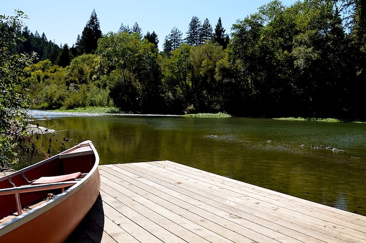 Eric's Landing is a wonderful riverfront home with plenty to keep you entertained. The home has a pool table, 2 flat screen TVs, open floor plan, BBQ grill, outdoor dining and great river and redwood views. In the summer, a large dock on the river is the perfect place to hang out or launch the 2 kayaks and canoe that are provided mid-June through mid-September. Or if you prefer a beach, just walk two doors down to the neighborhood beach.