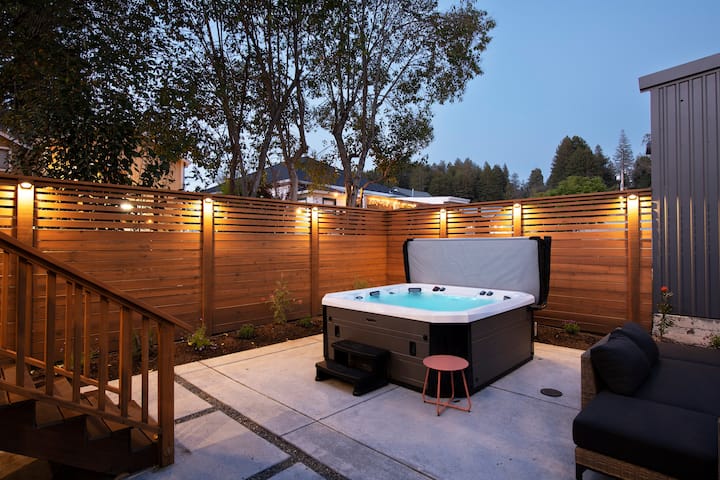 The Lifted Lady - formerly known as Moon River's End - is one of the most striking 100-year-old gals you’ll stay at! She's keeping up with the times with a full face-lift, literally! The house was lifted and fully remodeled in 2022/23 - sleek kitchen with stainless appliances and large island, Smart TV and devices, streaming apps, refreshed inventory, keyless entry, new 6-person hot tub, solar, battery wall, A/C, and more. This bungalow has style!