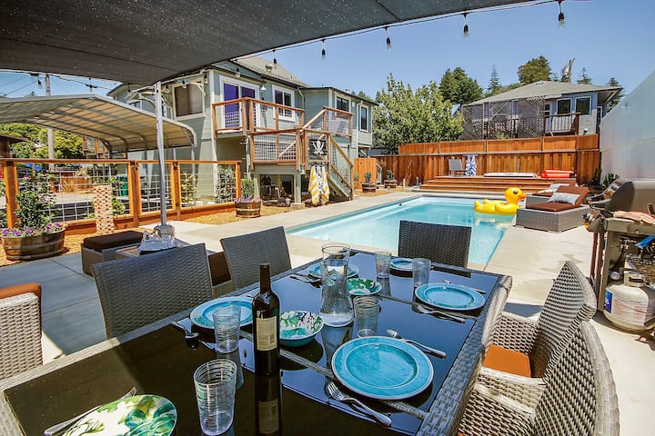 Bed And Biscuit is a modern river home located in downtown Guerneville. You’ll appreciate the home's upbeat personality and laid- back vibe. Cooking and dining are a breeze in the fully remodeled kitchen and dining area overlooking the pool and hot tub. Abundant outdoor seating makes it easy to lounge by the pool or have a meal outside. You’re close to restaurants, bars and shopping (including the seasonal farmer's market) and Johnson's Beach is just 3 blocks away!